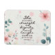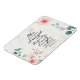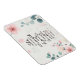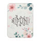 Inspirational quote scripture magnet depicts a beautiful floral design with pink flowers and blue leaves. It features Bible Verse Proverbs 31:25, ""She is clothed with strength and dignity and she laughs without fear of the future."