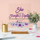 Proverbs 31:25 Strength and Dignity Purple Flower Acrylic Sign