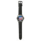 My husband loves the watch, he likes the dial, the graphics, the band, and it keeps perfect time.
