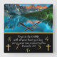 Gold Christian Faith with a moutain peaks reflection in a blue lake and blue sky with the text saying.