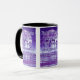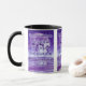 This two-tone mug features a typograph design that has a Vidaloka print font with purple coloured letters, silver coloured outline displaying the "Proverbs 4:14" KJV bible scripture verse over a picture with a full moon in the background plus purple coloured palm trees over light purple coloured water flowing in a waving motion in this faith based theme. This verse is referencing the Book Of Proverbs 4th chapter showing the 14th verse of this bible scripture quote theme from the King James bible. The rim & handle are glazed in matching colours available in 11-ounce or 15-ounce sizes microwave and dishwasher safe ceramic construction.