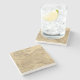 The coasters are gorgeous, a quality feel and heavy weight. They look like a precious archeological find. A rustic stone juxtaposed with a modern floral black and white print. I like the way the print goes slightly imperfect on the cut stone edges giving them a kind-of natural beauty.