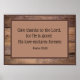 This great scripture promise found in Psalm 118:29 is featured on a nice wood grained background. It has a rich and authentic look to it. The size 11x18 is easy to frame and will fit in most locations. Wonderful promise from God's word.