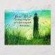 Inspirational quote postcard depicts a lighthouse surrounded by tall grass and features Bible Verse Psalm 119:105, "Your Word is a lamp to my feet and a light to my path." _