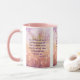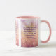 This two-tone mug features an agrandir wide print font with purple letters showcasing the "Psalm 127:3 KJV" bible scripture verse over a background picture displaying a upclose dim view of a field full of wild flowers with a purple coloured look in this floral theme. This verse is referencing the Book Of Psalm 127th chapter showing the 3rd verse in this bible scripture quote theme from the King James bible. The rim & handle are glazed in matching colours available in 11-ounce or 15-ounce sizes microwave and dishwasher safe ceramic construction.