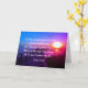 Beautiful custom greeting card depicts an amazing sunrise over the water and features Bible Verse Psalm 143:8, "Let the morning bring me word of your unfailing love, for I have put my trust in you. Show me the way I should go for to you I entrust my life."~