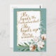 The artwork is lovely and compelling. I have used this card to encourage an ill friend and to offer a short note of sympathy to another. There was an odd white space at the bottom. Otherwise, quite beautiful.