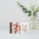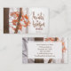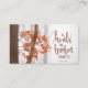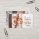 Inspirational quote scripture business card depicts a simple nature photograph with a branch of burnt orange and red autumn leaves in a forest of trees. It features a portion of Bible Verse Psalm 147:3, "He heals the broken hearted." Photo by Simon Berger.