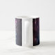 Inspirational quote scripture coffee mug depicts a blue and purple starry night sky. It features Bible Verse Psalm 147:4 "He counts the stars and calls them all by name."