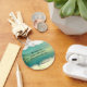 Inspirational quote scripture keychain depicts a beautiful nature photograph of a lake surrounded by mountains. It features a portion of the beloved 23rd Psalm verses 2-3, "He leads me beside still waters. He restores my soul."