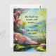 Inspirational quote scripture postcard depicts a beautiful nature watercolor painting with a quiet stream of water lined with pink flowering trees and a blue sky. It features a portion of the beloved and encouraging Bible Verse 'The Lord is my Shepherd', Psalm 23:2-3, "He leads me beside still waters, He restores my soul." The greeting, prayer can be customised or deleted for a hand written message._