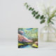 Inspirational quote scripture square business card depicts a beautiful nature watercolor painting with a quiet stream of water lined with pink flowering trees and a blue sky. It features a portion of the beloved and encouraging Bible Verse 'The Lord is my Shepherd', Psalm 23:2-3, "He leads me beside still waters, He restores my soul."