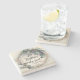 The coasters are gorgeous, a quality feel and heavy weight. They look like a precious archeological find. A rustic stone juxtaposed with a modern floral black and white print. I like the way the print goes slightly imperfect on the cut stone edges giving them a kind-of natural beauty.