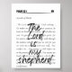 Embrace timeless faith and simplicity with this Psalm 23 minimalist typography poster. Featuring the beloved verse “The Lord is my shepherd” in clean, modern design, this print blends spiritual inspiration with elegant style. Perfect for bedrooms, living rooms, prayer spaces, or offices, it offers a daily reminder of God’s guidance and peace.