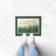 Scripture custom doormat depicts a beautiful scene of pine trees in the mountains. It features Bible Verse Psalm 27:1, "The Lord is my light and my salvation—Whom shall I fear?"-
