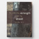An inspirational plaque featuring the image of a shield on an antiqued wood background and the empowering words of Psalm 28:7- 'The Lord is my strength and my shield"
