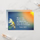 Flat greeting card with inspirational quote scripture depicts the sun shining on the face of a white daisy. It features an encouraging Bible Verse from Psalm 34:5, "Those who look to Him are RADIANT; their faces shall never be ashamed." The greeting, prayer can be personalised or deleted for a hand written message.