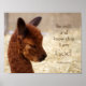 Our Psalm 46 10 Alpaca Posters have a sleeping baby alpaca on it and the bible quote from Psalm 46:10 KJV. Out of all the farm animals I thought the alpaca would be the best for our bible scripture poster. The alpacas have a sweet tender spirit about them. In the photo the baby alpaca has her head bowed as if she was praying. It's a wonderful bible verse quote reminder that God is in control, taking care of us, no matter what is going on around us... very comforting.