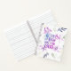 Inspirational scripture notebook, journal depicts a beautiful watercolor violet garden design with simple flowers and leaves. It features Bible Verse Psalm 46:10 "Be still and know that I am God." _