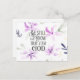 Inspirational scripture postcard depicts a beautiful watercolor violet garden design with simple flowers and leaves. It features Bible Verse Psalm 46:10 "Be still and know that I am God." *