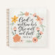 Psalm 46:5 "God is within her, she will not fall" text in a modern floral wreath. The wreath features hand-drawn flowers with a doodle style, in pastel pink, pastel peach, blush pink, white, dark green, and light grey.