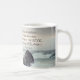 Inspirational quote mug depicts large rocks on the ocean shore and features Bible Verse Psalm 61:2, "When my heart is overwhelmed; Lead me to the Rock that is higher than I." _