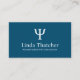 Psi symbol professional psychologist business card template. Elegant logo company card for psychology office, private practice, clinic, entrepreneur etc. Classy layout design with stylish typography. Blue or custom background colour. Make your own visit cards for meetings and conventions. Customisable text for custom address, phone, email and website. Start your business today!