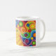Groovy baby! A yellow striped cat with swirling whiskers and a psychedelic rainbow patterned background. Mug with a customisable design for you to personalise with your own text, images and ideas. An original digitally enhanced coloured pencil drawing by Jess Perry.