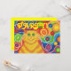 Groovy baby! A yellow and orange striped cat with swirling whiskers and a psychedelic rainbow patterned background. Invitation with a yellow, orange, red, blue, green, pink, purple, and white customisable design for you to personalise with your own text, images and ideas. An original digitally enhanced coloured pencil drawing by Jess Perry.