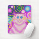 Groovy baby! A pink striped cat with swirling whiskers and a psychedelic rainbow patterned background. Mousepad with a pink, blue, green, purple and yellow customisable design for you to personalise with your own text, images and ideas.An original digitally enhanced coloured pencil drawing by Jess Perry.
