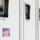 Groovy baby! A pink striped cat with swirling whiskers and a psychedelic rainbow patterned background. Fridge magnet with a pink, blue, green, purple and yellow customisable design for you to personalise with your own text, images and ideas. The text can easily be changed using the template provided or click the 'Customise It' button to make further alterations. An original digitally enhanced coloured pencil drawing by Jess Perry.