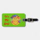 Groovy baby! A yellow and orange striped cat with swirling whiskers and a psychedelic rainbow patterned background. Luggage tag with a yellow, orange, red, blue, green, pink, purple, and white customisable design for you to personalise with your own text, images and ideas. An original digitally enhanced coloured pencil drawing by Jess Perry.