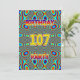 An eye catching psychedelic 107th birthday party invitation. Colourful and bright, this is a birthday party invitation that will be noticed.