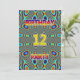 An eye catching psychedelic 12th birthday party invitation. Colourful and bright, this is a birthday party invitation that will be noticed. Add your party details on the back to personalise this special card.