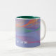 Modern minimalistic abstract lavender pattern coffee mug. Personalised coffee mug. Add a burst of colour to your day with this personalised coffee mug featuring your name in blue green Psychedelic stripes. The minimalist, geometric letter design makes it a unique and thoughtful gift for friends and family.