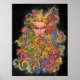 A guy has a magnificent psychedelic beard that is groovy and far out.