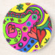 Psychedelic Bohemian Hippie Colorful Art Decorative Colorful Sandstone Coasters feature fun whimsical boho hippie art in bright primary colors in a cartoon-like line art with flowers, hearts, and swirls. See coordinating decor for the home, office, school, and everyday living in our store at zazzle.com/DIYDecor.