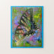A beautiful fantasy art puzzle featuring a Tiger Swallowtail with stained-glass like wings. You'll want to hang this one on your wall when completed. Choose any colour you like for the border (shown here in teal blue).