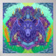 A majestic, winged wolf occupies the centre of the image, its piercing eyes and determined expression conveying a sense of power and nobility. Surrounding the wolf are intricate, ornate patterns, including angels, skulls, flames, and a banner with a symbol.