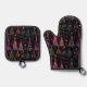 Psychedelic Christmas Trees on Black Oven Mitt & Pot Holder Set