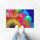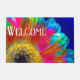 This custom doormat is designed with a close-up image of an offset daisy digitally altered in colour for this psychedelic effect. "Welcome" is added in large easy-to-read font. The mat measures 24" x 36" and has a smooth felt front & nonslip latex back. It also has a reinforced edge to resist fraying, is both fade & mildew resistant, and cleans easily with a spray of water. Ideal for covered entryways such as porches, apartments, offices, condos, etc. Feel free to contact me through Zazzle if you have questions about this mat or would like help transferring this image to a different item. I'm happy to help to ensure the image and wording fit correctly.