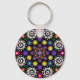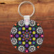 Hand drawn mandala black, yellow, blue and purple dot mandala key chain.