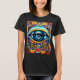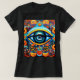 A.I .created print of a large, colorful eye is surrounded by vibrant surreal psychedelic floral patterns and swirling abstract shapes.