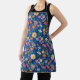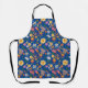 Psychedelic Flowers Pattern Retro Style Blue BG Apron