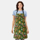 Psychedelic Flowers Pattern Retro Style D Green BG Apron