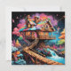 The image is generativecontent. I have made tree house designs but, never made a gingerbread tree house on a design so I thought why not. I liked the water in the design then thought would there be running water at Christmas time? I am not sure what that person is to the right of the roof of the tree house. One of the things I like about the image is the colourful roof.