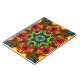 This psychedelic kaleidoscope design features green, red, and orange. Vibrant trippy visuals for the modern hippie or anyone who loves bright colours!