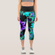 Psychedelic Hippie Flower Purple Teal and Black Le Capri Leggings