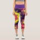 These psychedelic leggings feature bright pink and yellow with deep purple in an asymmetrical kaleidoscope pattern.