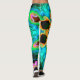 These psychedelic leggings feature bright orange, blue, and black in an asymmetrical kaleidoscope pattern.